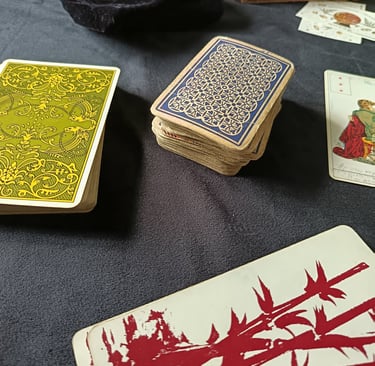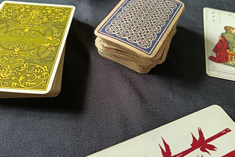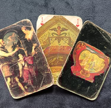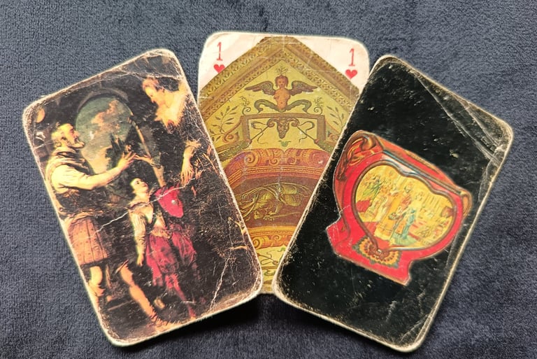 Don héréditaire depuis plusieurs générations, avec jeu de cartes de création personnelle dans la pure tradition.